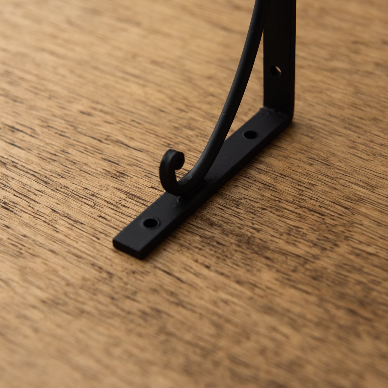 蔓のような支えとシックなマッドブラックが特徴の棚受けです。