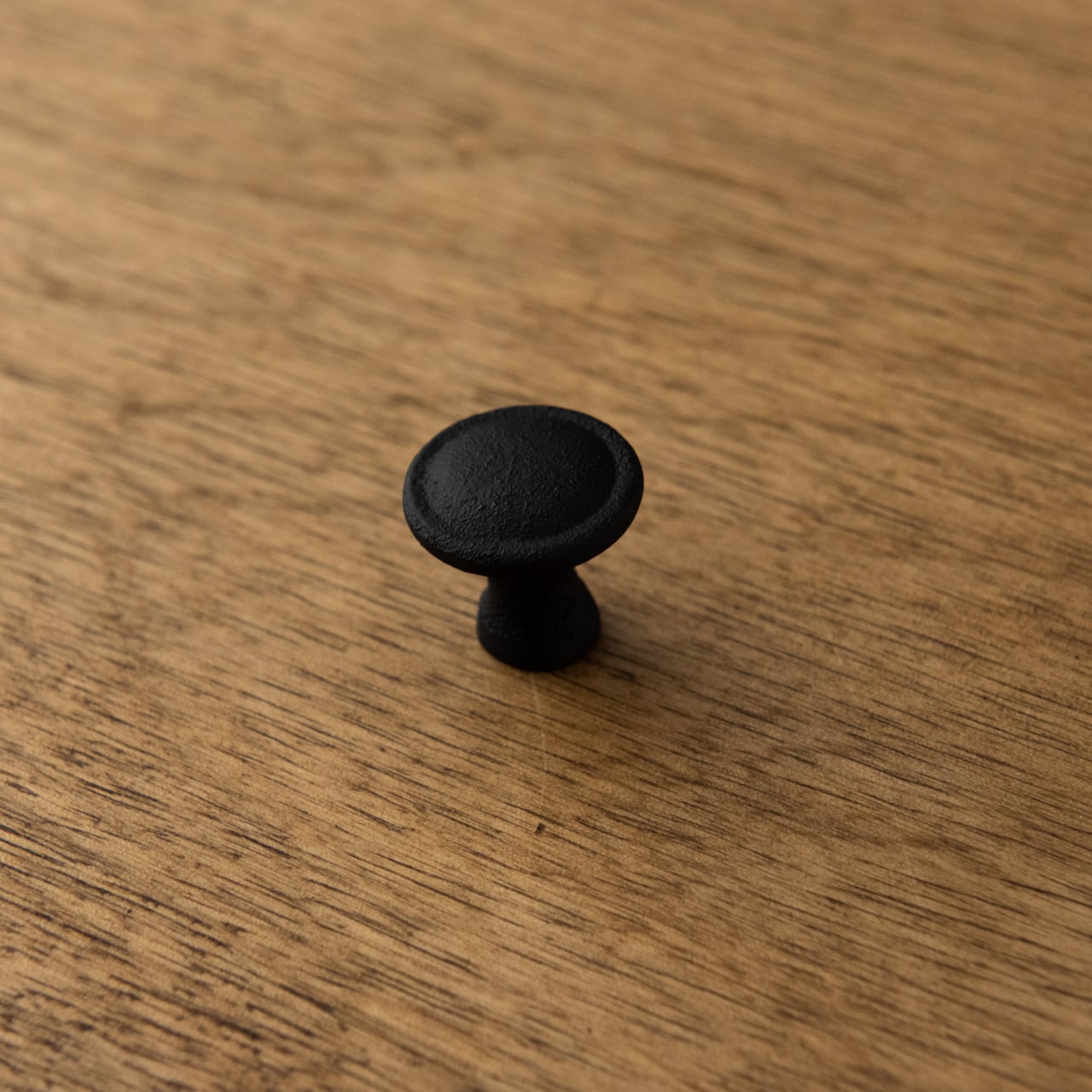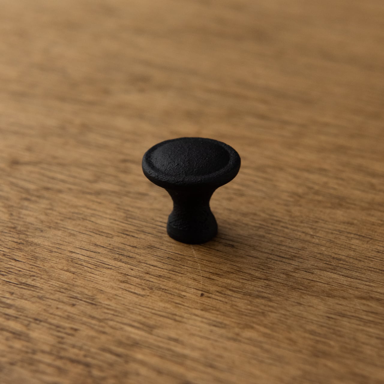 柔らかな曲線のデザインが特徴的な黒染め真鍮製のつまみです。