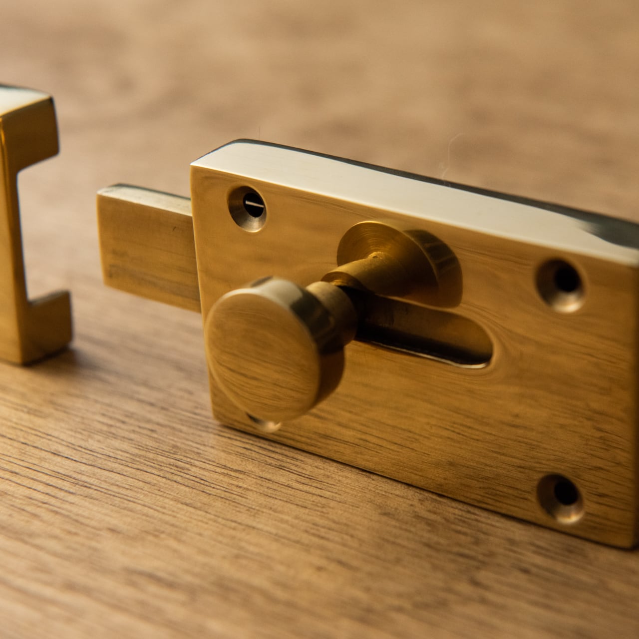 全部品が丁寧に磨かれ、鏡面のようなツヤを持っており、また経年変化することで真鍮独特の味わいが出てきます。お手洗いのドアに付ければ、その圧倒的な存在感でドアを彩ってくれます。
