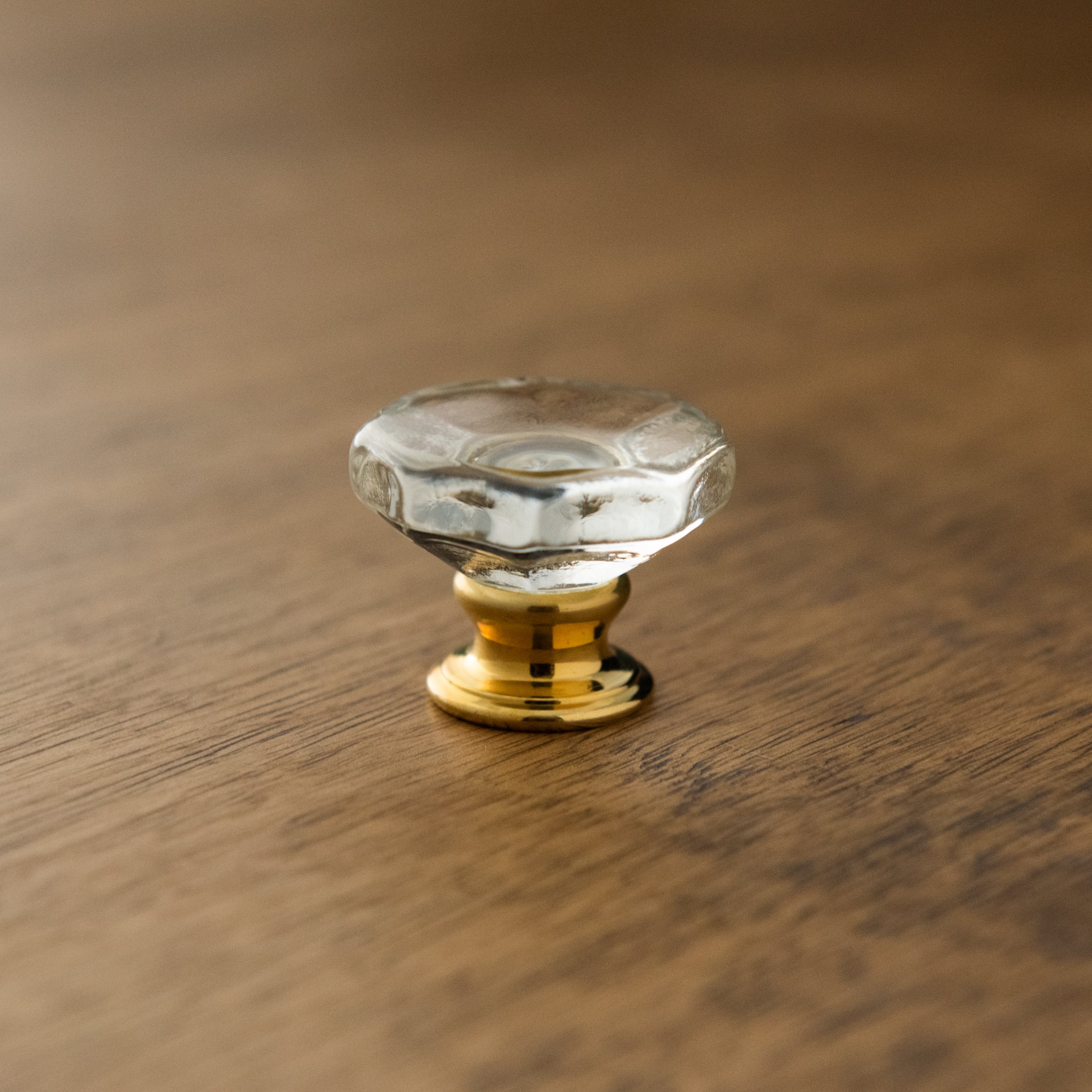 大きな八角系のガラスが存在感を放つガラスつまみです。