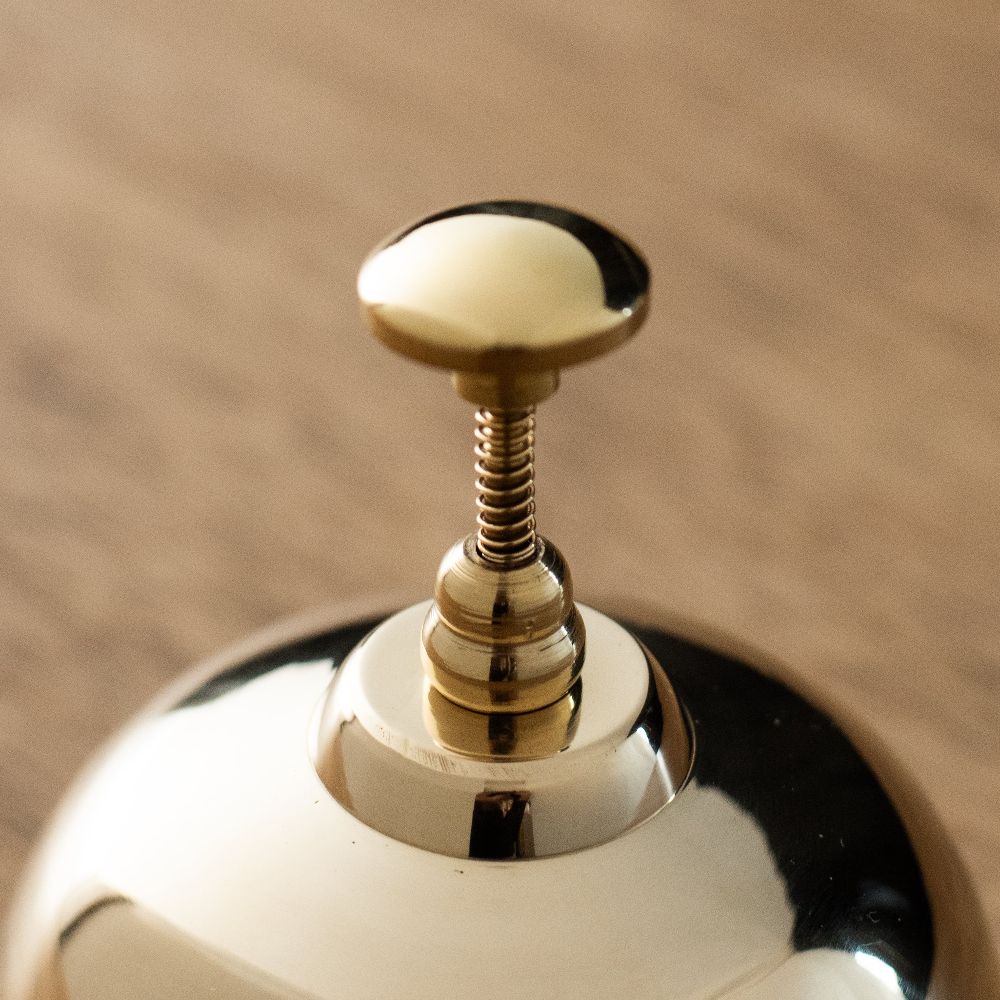 真鍮製の上質な素材で作られており、シンプルなデザインはさまざまお店や事務所によく馴染みます。フロントやレジ、レストランの呼び鈴などにもお使いいただけます。音色も心地よく、来客やスタッフへのサービス呼びかけに最適です。